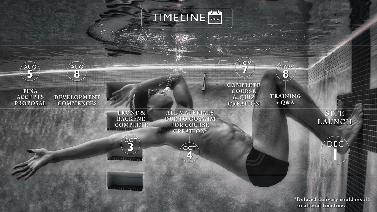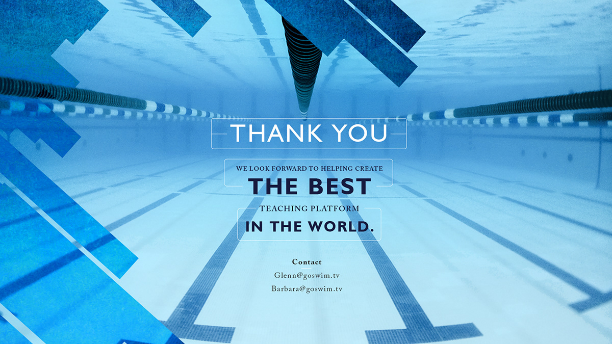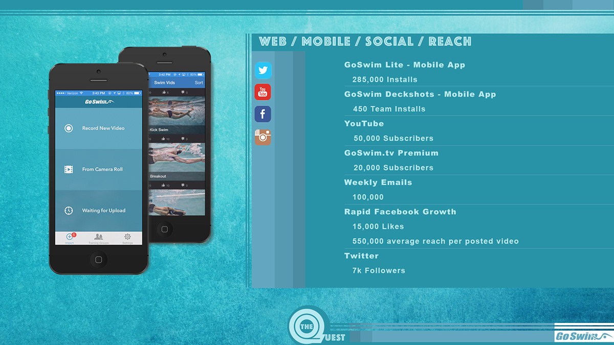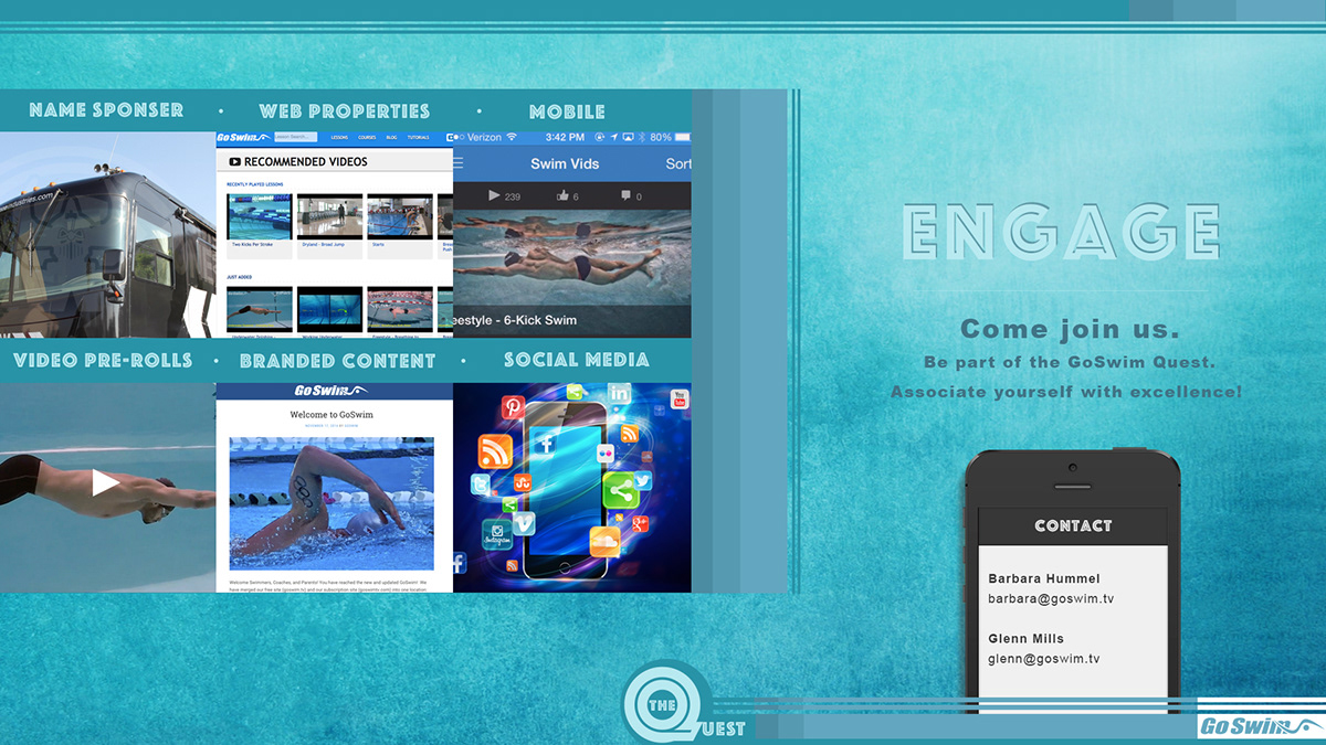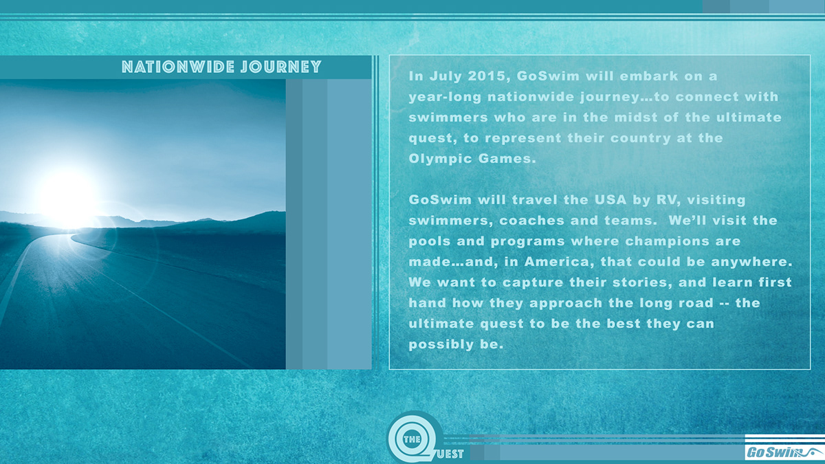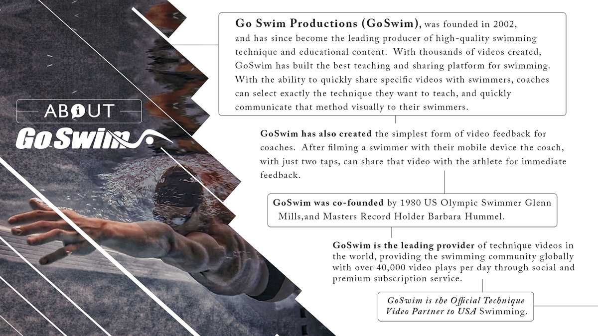 Internal marketing and launch information decks for the Go Swim tour and companion app.