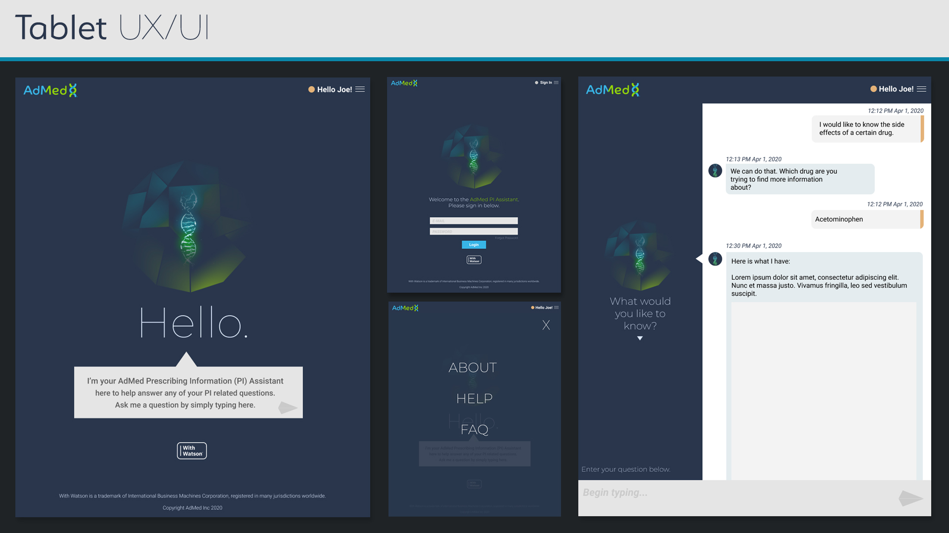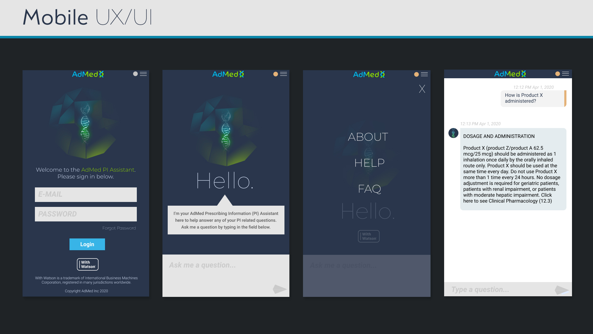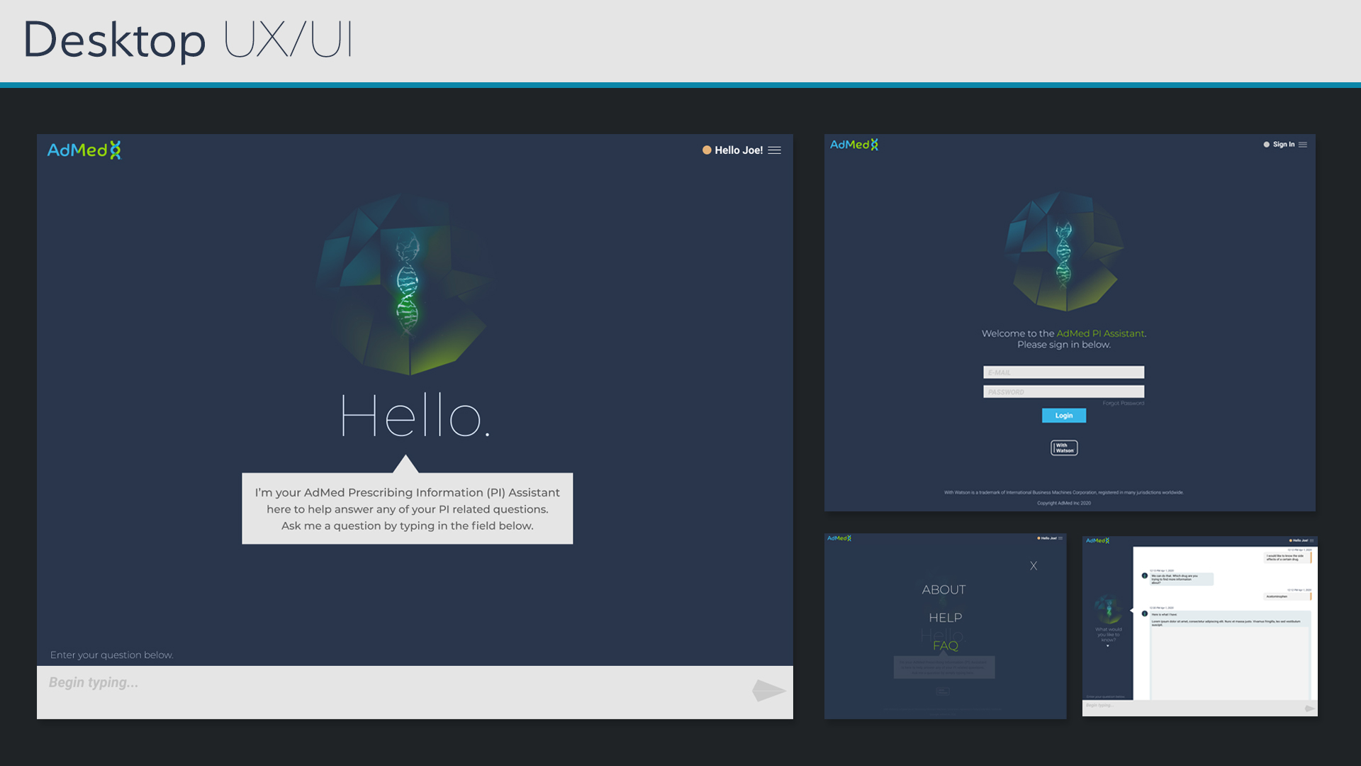 UX/UI designs for a desktop and mobile app that provides AI assisted answers to pharma sales associates.