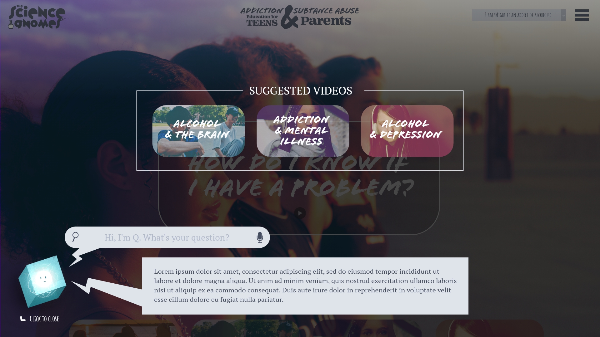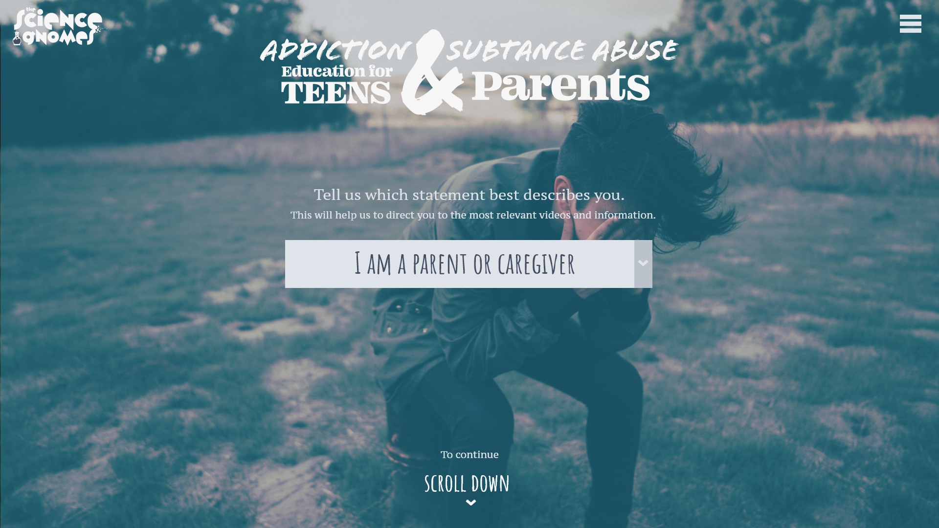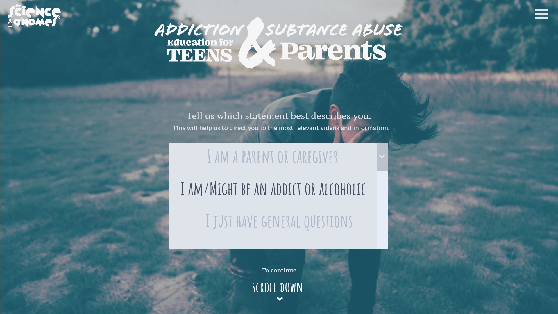 Concept for an addiction / substance abuse website for teens and parents that would offer information, educational videos and other resources for those struggling with addiction, as well as, families of those struggling with addiction.